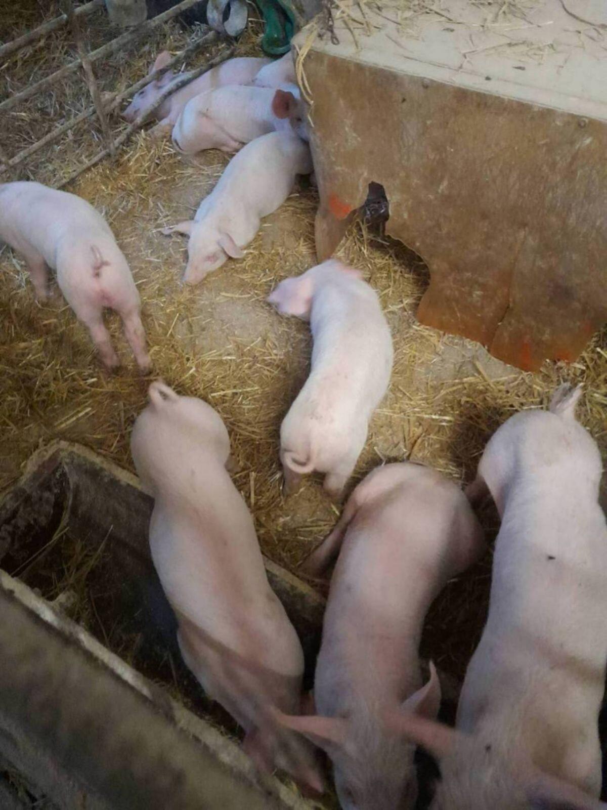 Schwäbisch Hällisch/Duroc × Pietrain Ferkel mit ca. 25-30 kg ab Anfang November abzugeben. Derzeit sind auch noch Duroc × Pietrain mit ca. 40 kg um € 135, -/Stk. abzu