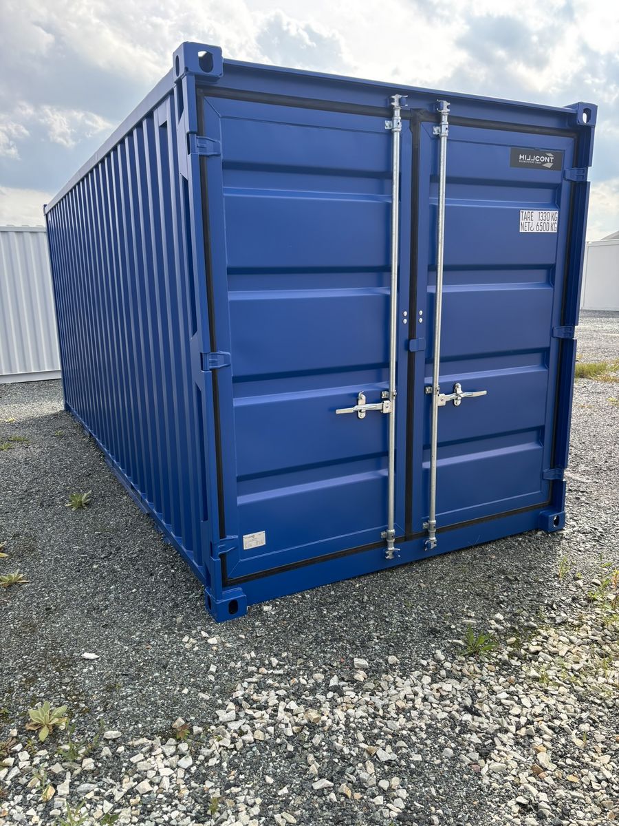 Maße:Außenmaße: 6.058 x 2.438 x 2.591 mmLackierung: RAL 5010Mit Staplertaschen für einfaches versetzenAusstattung:Doppelflügeltüre mit 2 verzinkten Verri