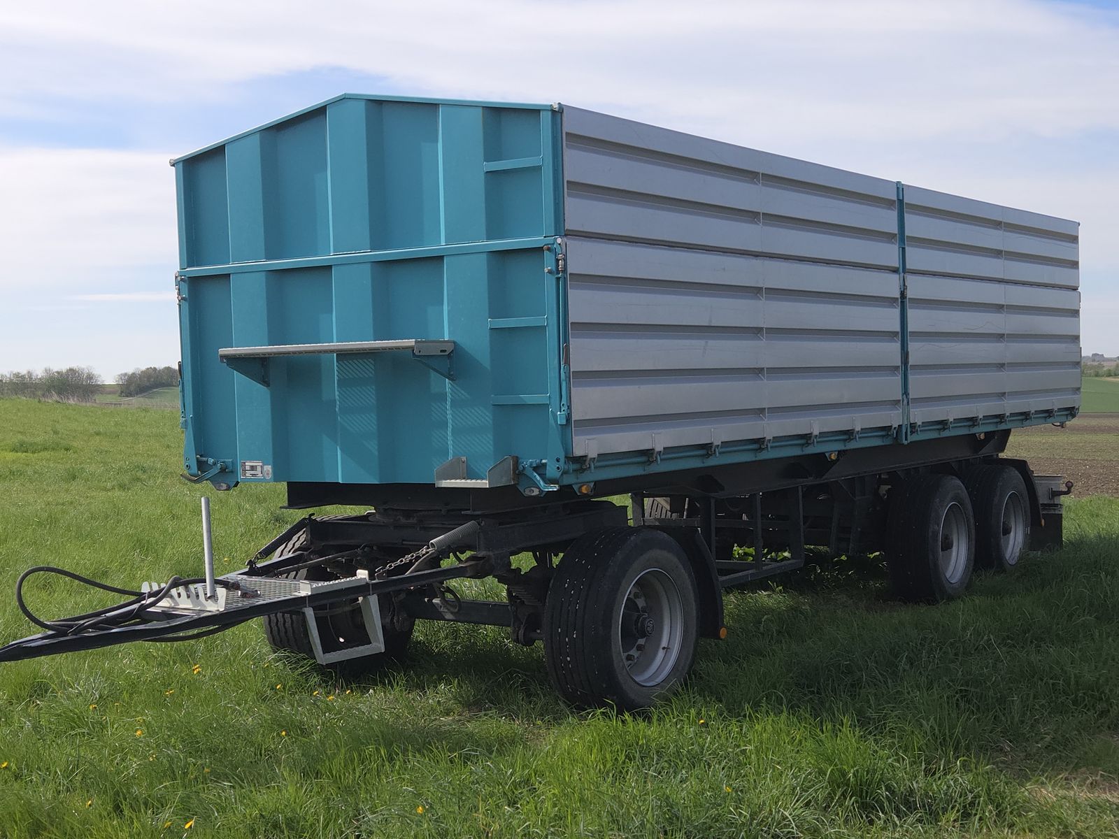 Verkaufe Lkw-Anhänger, Ballenwagen, umgebauter WAP-Anhänger, Marke Sommer-D, verzinkt, kein Rost, Brücke neu, Luftfederung und DL-Bremse, neuwertige Reifen, Scheibe