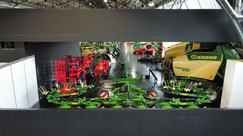 serienmäßige Ausführung+ geschobenes Frontmähwerk mit integrierter Federentlastung+ Krone Zinkenaufbereiter+ Klingen-Schnellwechsler+ Transportbreite 3m+ f