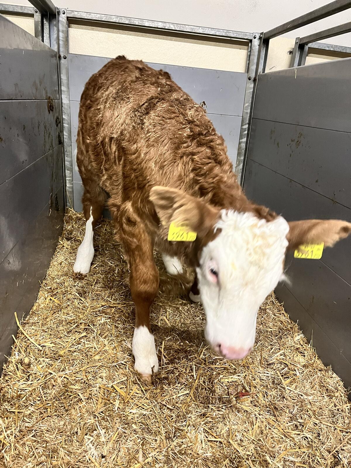 Verkaufe hornloses Fleckviehzuchtkalb. Tržište goveda Simental telad