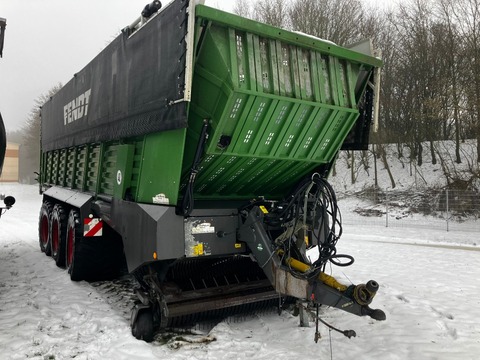 Volumen: 50 cbm., Tridem-Fahrwerk, Zwangslenkung (K50), hydr. Achsfederung, Knickdeichsel, K80 Untenanhängung, hydr. Kratzboden, Befüllautomatik, Dosierwalzen, Lader
