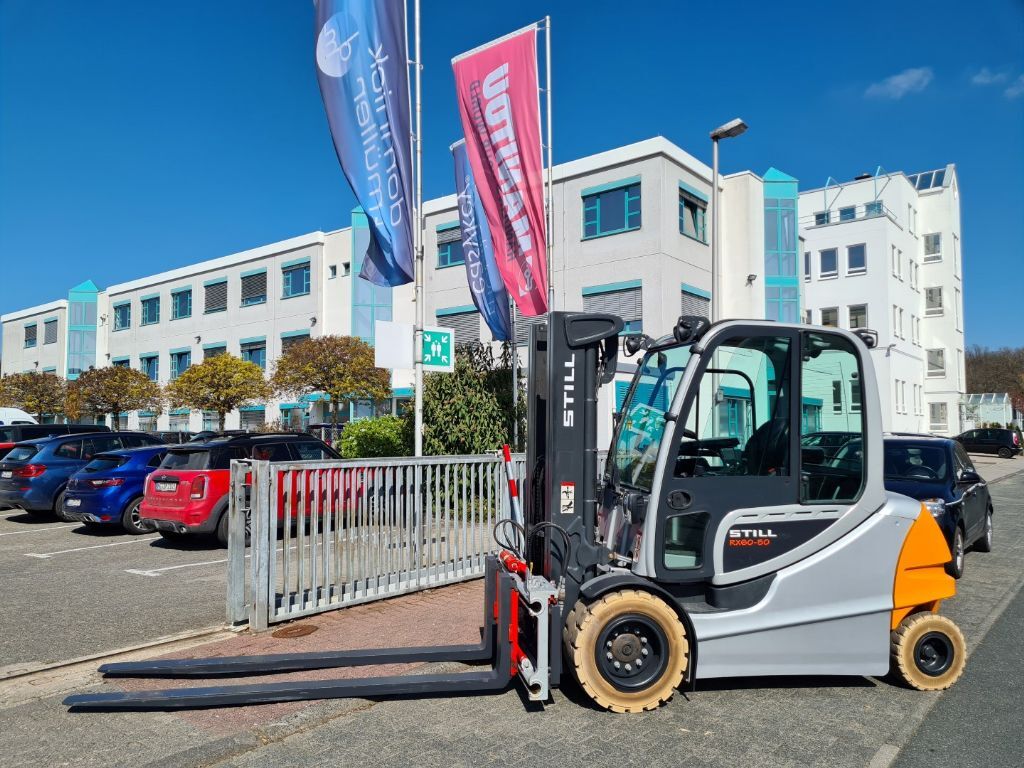 Bauart: Frontstapler / Elektro 4 Rad-Stapler, Tragkraft: 5000kg, Hubhöhe: 4700mm, Bauhöhe: 2340mm, Freihub: 1500mm, Gabellänge: 2400mm, Batterie: Still Bj. 2019 80V