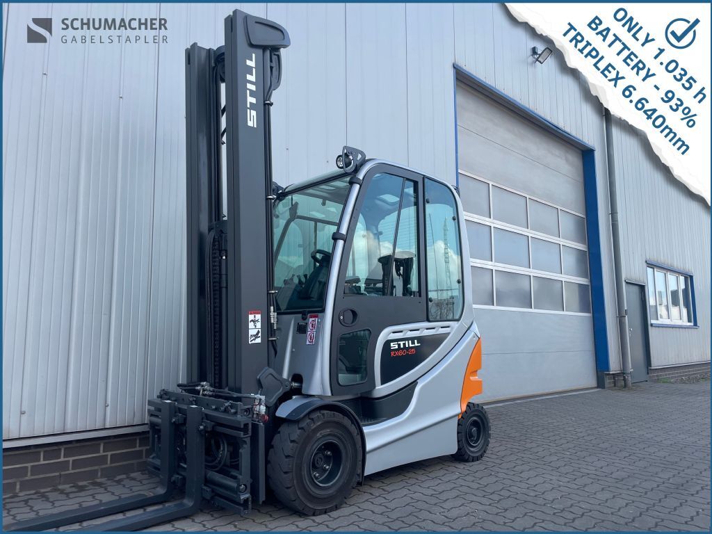 Bauart: Frontstapler / Elektro 4 Rad-Stapler, Tragkraft: 2500kg, Hubhöhe: 6640mm, Bauhöhe: 2925mm, Freihub: 2240mm, Gabellänge: 1200mm, Batterie: Restkapazität: 93%