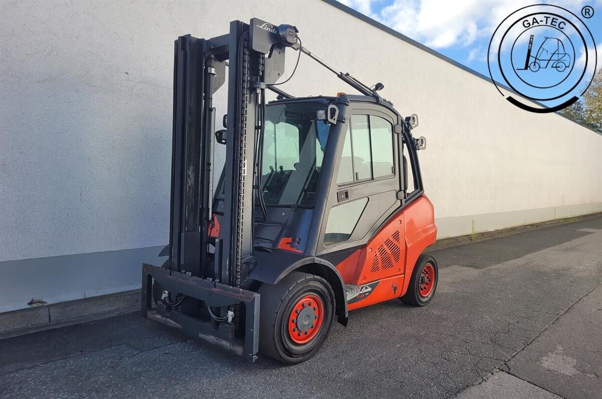 == Weitere Informationen (DE) ==Ausstattung :-------------- Schutzdach- 3. Ventil- 4. Ventil- Vollkabine- VollfreihubBei den Betriebsstunden handelt es
