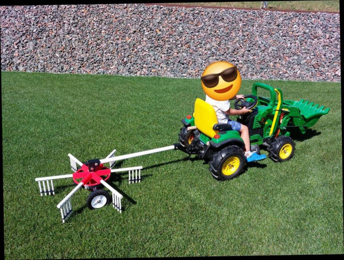 Verkaufe einen Schwader zum Anhängen an einem Trettraktor oder Elektrotraktor. Der Schwader wird beim Fahren automatisch angetrieben. Er hat auch Schmiernippel zum W