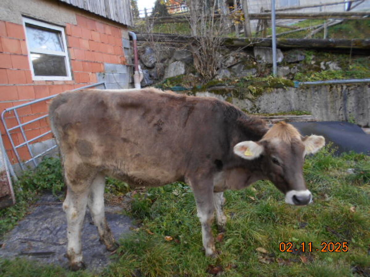 Verkaufe ein sehr schönes Mischlings-Stierkalb (25% Fleckvieh und 75% Braunvieh), geboren am 08.09.2025. Das Kalb ist gesund, vital und gut entwickelt, zeigt eine gu