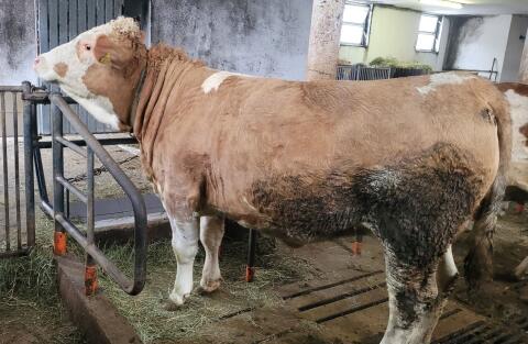 Gekörter, deckerfahrener, genetisch reinerbig hornloser, 47 Monate alter Sprungstier zum Fleischpreis abzugeben. Zustellung möglich. Rindermarkt Fleckvieh Stiere