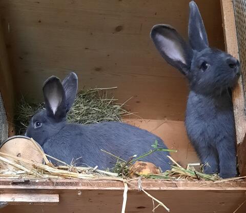 Zutrauliche Junghasen, blaue Wiener/helle Großsilber Mix, die schwarzen sind weiblich, die blauen männlich, 4 Monate alt, in 3.920. Kaninchen / Hasen Jungkaninchen