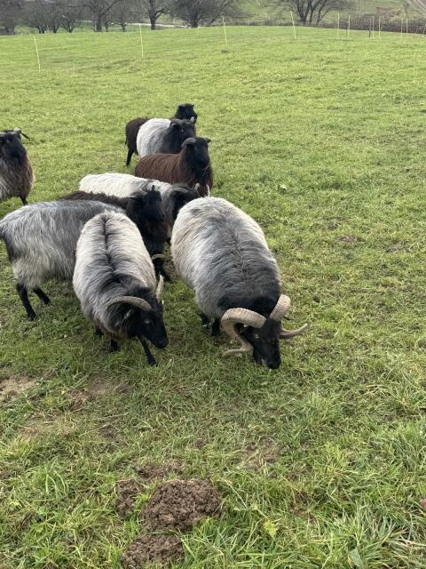 Verkaufe komplette reinrassige Heidschnuckenherde komplett oder einzeln. Komplett für € 1.500, -. Einzeln: Bock € 200, -, 5 Mutterschafe trächtig je € 200, -, 3 Mutterl