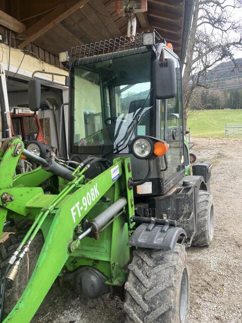 Einfacher, robuster Hoflader, ohne viel el., Breitreifen, hydr. Schnellwechsler, sparsamer 3-Zylinder-Motor, Palettengabel und Adapter für Euroaufnahme sind dabei. 2