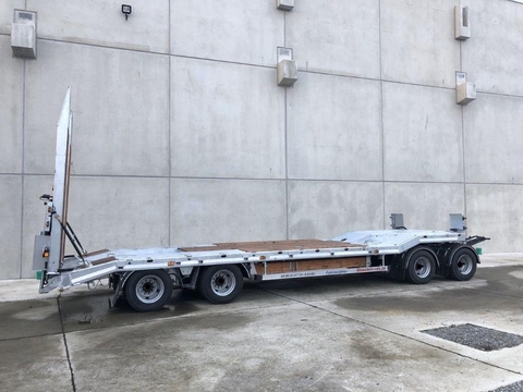 Auflieger, Tieflader 3-Achser, (Int-Nr.: 14222) Baujahr 1991 Höhe Sattel vorne 1, 5 m, Länge Sattel 3, 5 m Länge Ladefläche 7, 5 m Höhe Ladefläche 0, 85 m Breite 2, 49 B