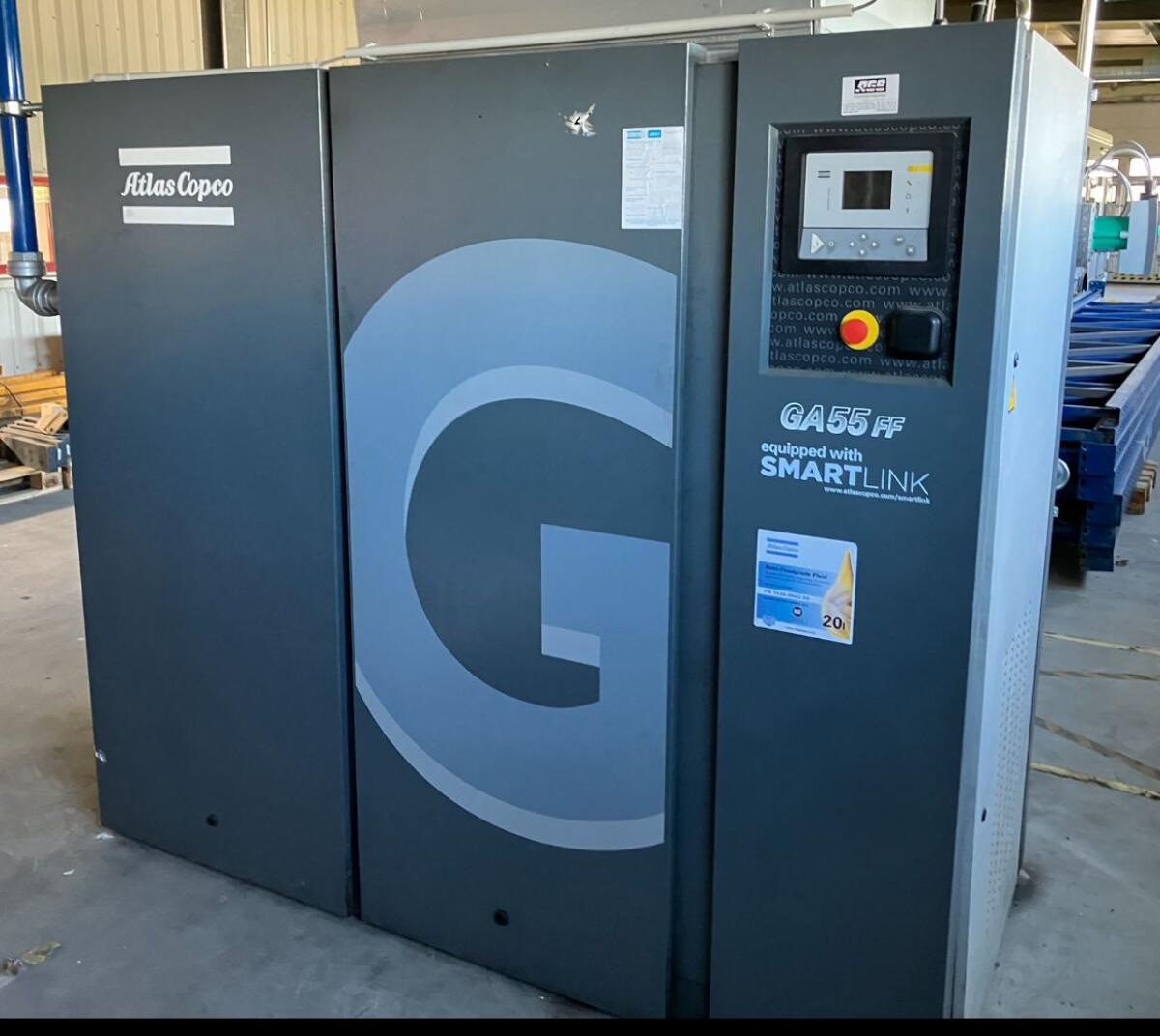 Verkauft wird: 1 Stk. Schraubenkompressor Atlas Copco GA55FF, ca. 55.000 Bstd., regelmäßige Wartungen wurden durchgeführt! 1 Stk. Adsorptionslufttrockner Atlas Copco
