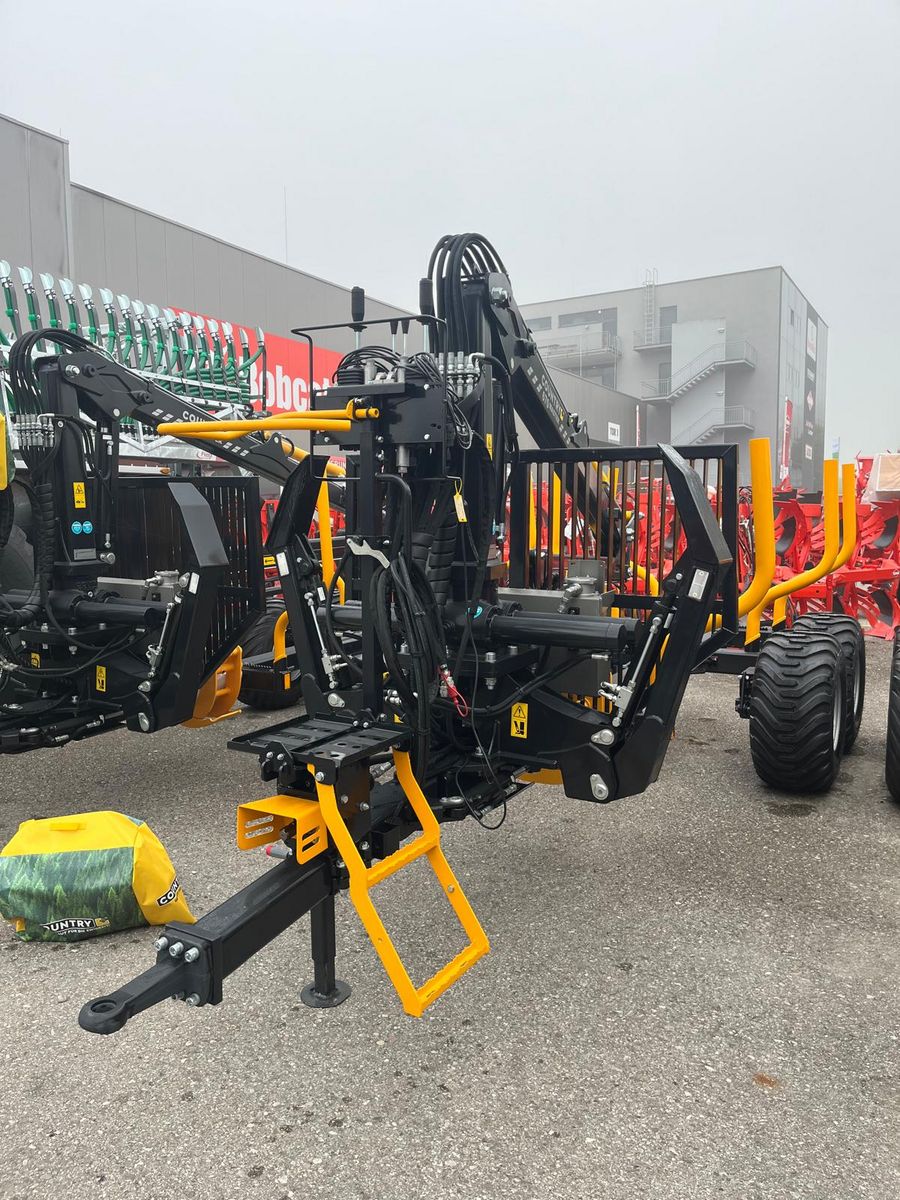 Neuer Country Rückeanhänger 70 S, 7 Tonnen Nutzlast, mit forstkran 550, 5, 5 m Reichweite, Eigenölversorgung, hydraulische 2 Rad Bremse, hydr. Leckdeichsel, 3 Rungenp