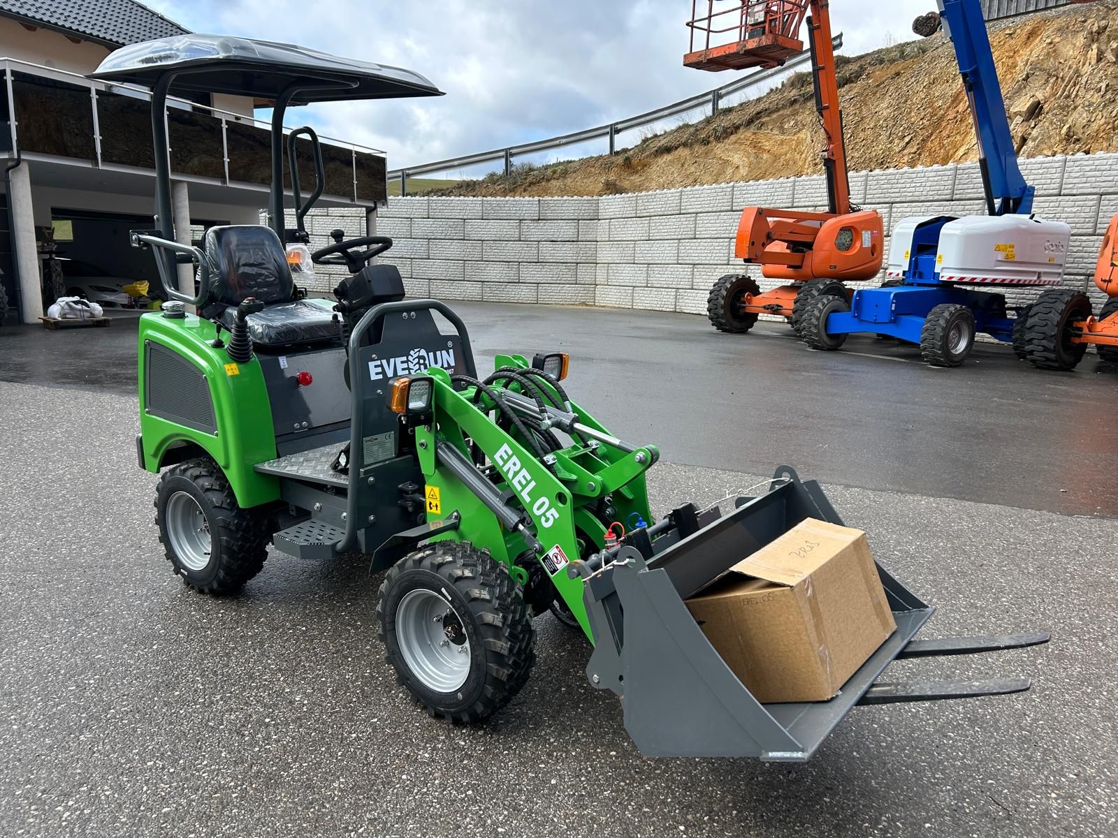 Everun Erel05 zu verkaufen. Nennlast 400kg Eimer-Nennkapazität 0, 2m³ Schütthöhe (bei 40°) 1300mm Hochheben 2100mm Dumping-Reichweite 550mm max. Gewicht heben