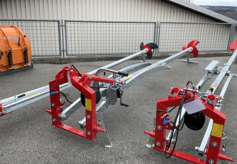 Gruber Miststreuer SM 900 mit Tandemachse, mit hydraulischer Bremse, Bereifung: 380/55-17, Streuwerk mit 4 stehenden Walzen, verzinkte Ausführung, hydraulischer Krat