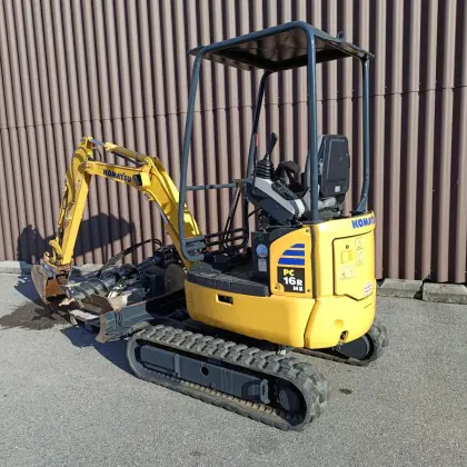 MIETKAUFANGEBOT KOMATSU PC16R-3HS MinibaggerBetriebsgewicht: 1.860 kg3-Zylinder YANMAR Motor, Abgasstufe EURO V, Hubraum 778 cm³, WasserkühlungTrockenluftfilte