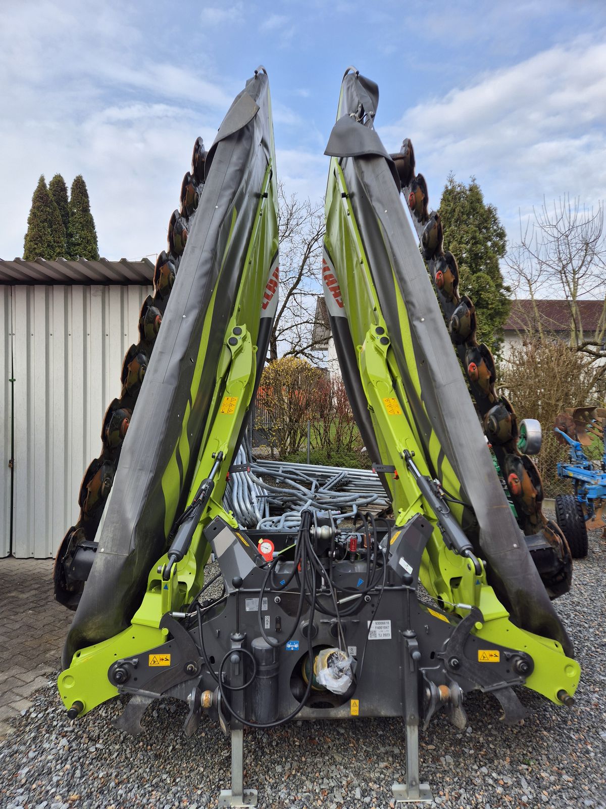 Arbeitsbreite 9, 70m Klappwinkel in Transportstellung 95 Grad Transporthöhe unter 4m 2 x 9 Mähscheiben Max Cut Mähbalken Messerschnellwechsel Hydropneumatische