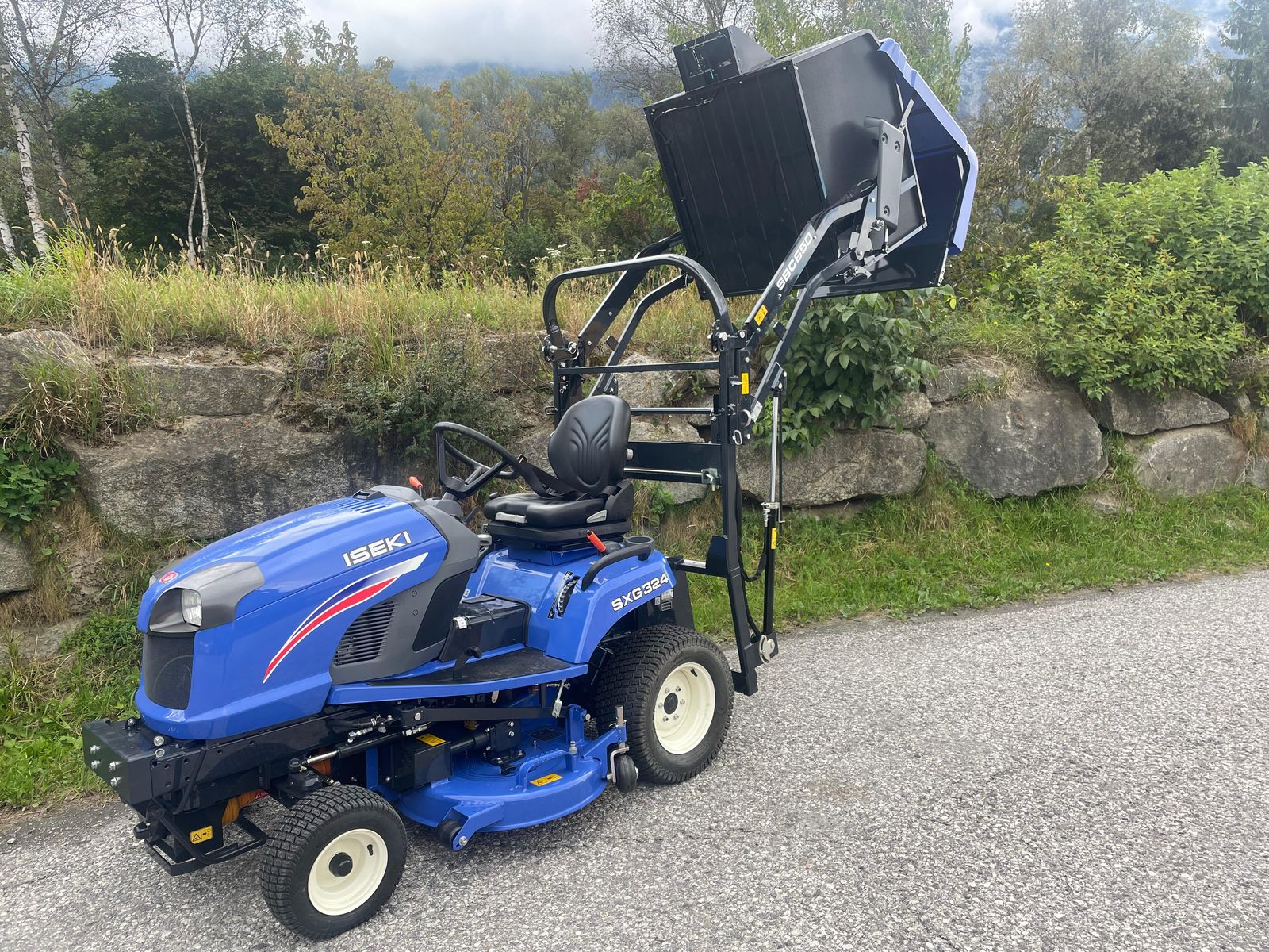 Aufsitzmäher ISEKI SXG 324 Hochentleerung - 3 Zylinder Dieselmotor mit 20 PS (1123ccm) - Abgasstufe Stage V - Getriebe mit Hydrostat Ansteuerung über zwei Fahrp