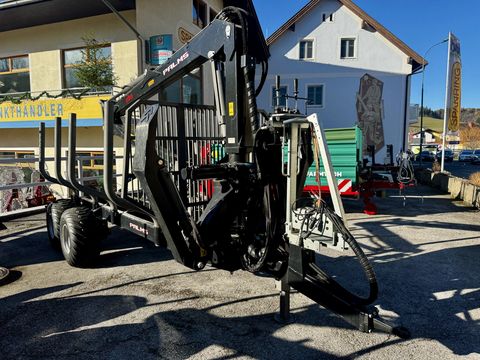 Neuwertiger Forstanhänger Palms H10D Kran K5.85 mit Walvoil Prehydrauik Steuerung, Greifer 145cm, Flap Down Stützen, Eigenölversorgung mit Stehpodest, Gelenkwelle,