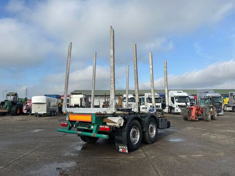 Palms Forstanhänger H10D, Serienausstattung: Schwenkdeichsel mit 2 Zylindern, 4 Rungenpaare Forwarerrungen, hydr. Bremse auf einer Achse, Untenanhängung mit Zugösen