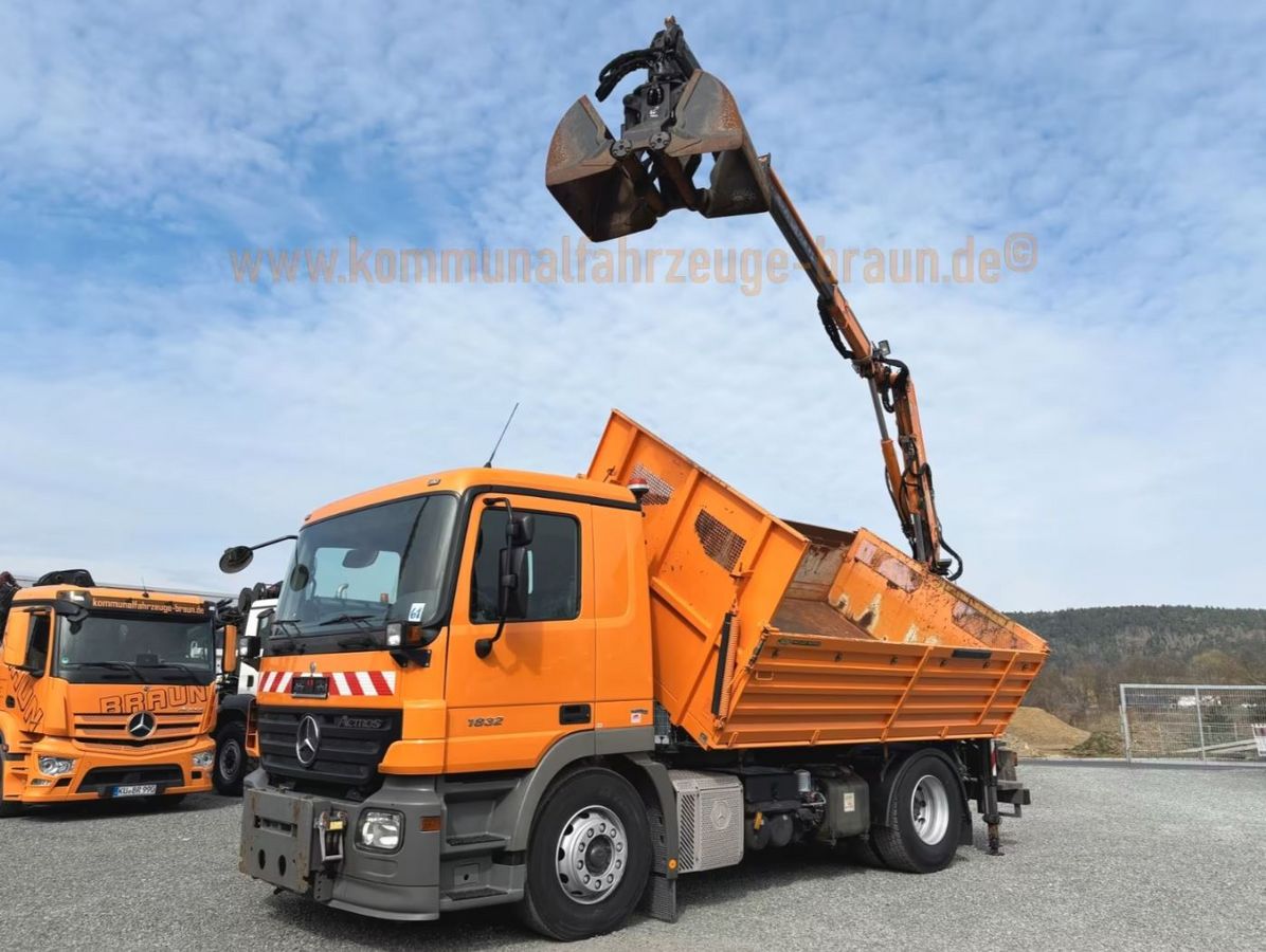 Mercedes-Benz Actros 1832 L 4x2 in Kommunalausführung mit Wechselsystem aus 1-Hand (Behördenfahrzeug). Voll-Luftgefdert Meiller Kipper Atlas Ladekran Typ: 65.