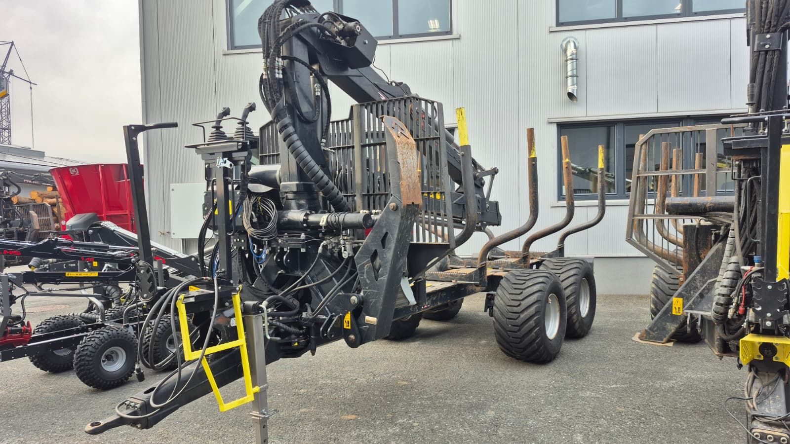 Palms Forstanhänger H10U -Schwenkdeichsel mit 2 Zylindern -4 Rungenpaare -Hydraulische Bremse 1 Achsen -Untenanhängung mit Zugöse -14.000 kg Höchstzulässiges Ge