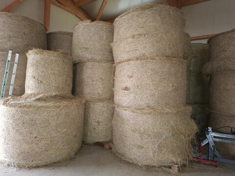 50 Stk. Rundballen von naturbelassener Wiese, stammt vom 1. Schnitt 6-2025, trocken gelagert in Halle. Futterbörse Heu