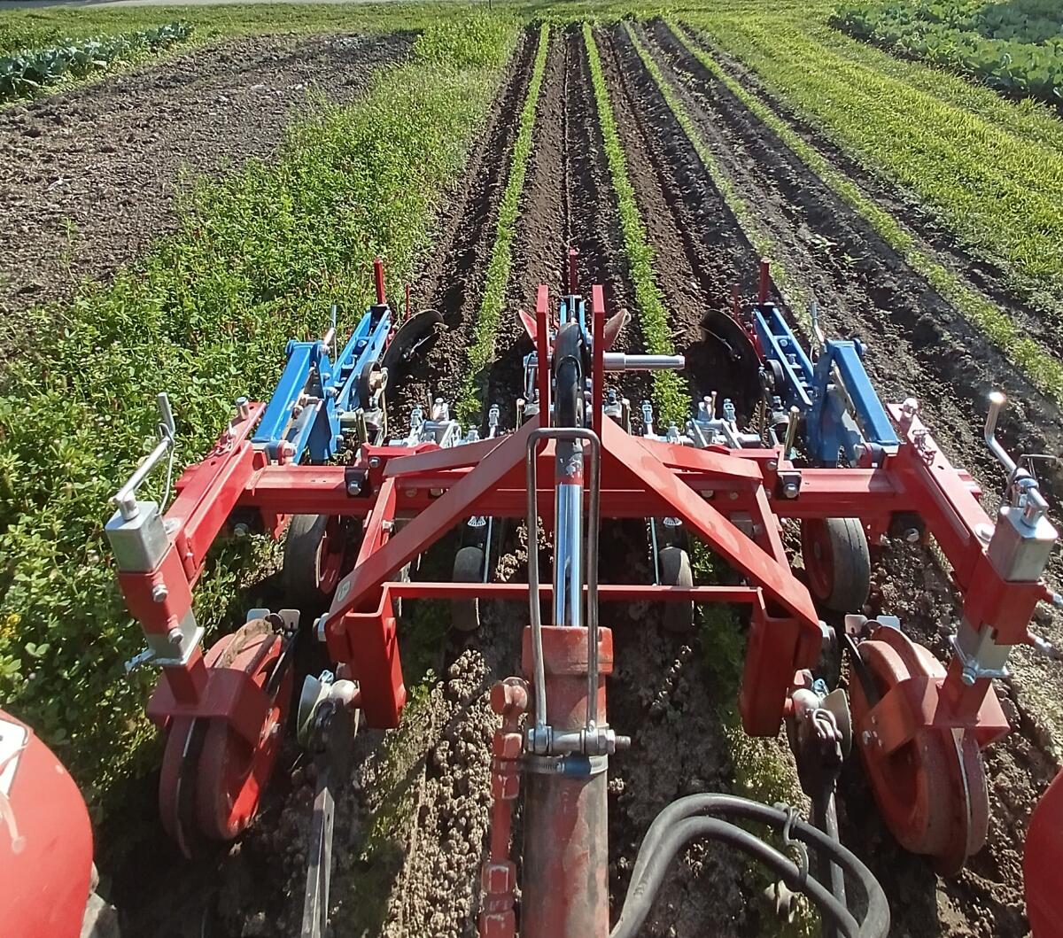 Verkauft wird ein sehr neuwertiges Bj. 2023 Kult Kress Hackgerät für 2-reihige Dammkulturen, 150er Spur, Heckanbau. Der Argus-Geräterahmen selbst bietet viele Einbau