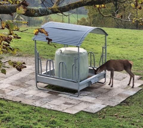 12 Fressplätze, für alle Rinderrassen, auch geeignet für Rinder mit Hörnern, Dreipunktanhängung, doppelte Verstärkungsrohre, Innenmaße: 2, 00 x 2, 05 m, Fresshöhe: 76