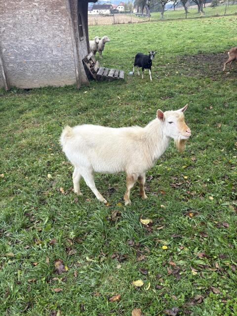 Verkaufe sehr zutraulichen hornlosen Sahneziegenbock. Ist führig, frisst aus der Hand. Verkaufe ihn, um frisches Blut in die Herde zu bekommen. Preis leicht verhande
