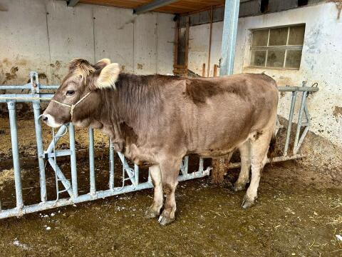 Ich verkaufe unser genetisch hornloses Fleckviehzuchtkalb Selly, geb. 06.10.2025, Vater: Walkner PP*, Einsatzleistung: 43, 00 kg, Fett: 5, 23 %, Eiweiß: 3, 30 %, Zellza