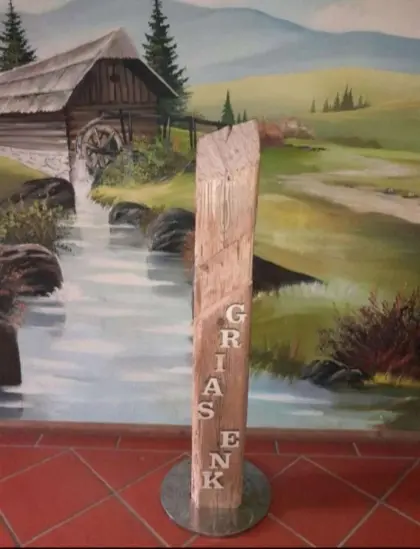 Willkommensständer, Grias Enk Ständer aus Altholz, Altholz Deko, 135 cm hoch, Aufsteller für Almhütte, urige Geschenkidee, Unikat, rustikal. Haus und Garten Fenster
