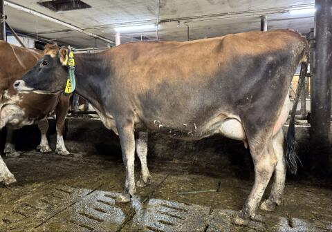 Verkauf hornloses Bio Jersey Kalb, Vater Maverick, Mutter el.: 26 l und 4, 54 %F, Großmutter VG85, Stammkuh: Avonlea Kendra EX95. Rindermarkt Jersey