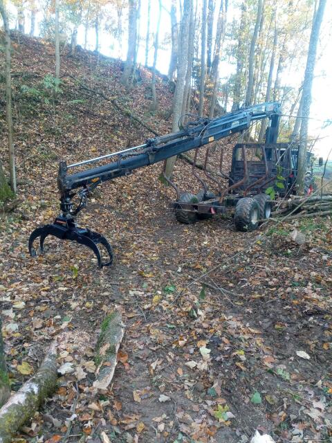 Schwenkdeichsel, hydr. Bremse, ca. 8 m Kranreichweite. Forst- und Holztechnik Forstanhänger / Rückewägen