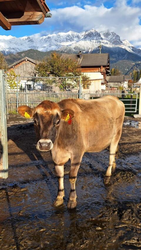 Bio, aus Anbindehaltung, geb. 6.5.2023, war den Sommer auf der Alm mit unserem Stier, wahrscheinlich trächtig. Rindermarkt Fleckvieh