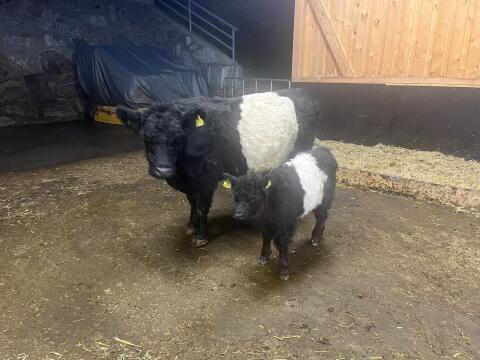 Verkaufe Galloway Kühe mit Nachzucht. Kuh Whity mit Stierkalb Paul. Whity geb. am 03.04.21, Paul geb. am 19.09.25, Vater aus dem Zuchtbetrieb. Laufstall gewohnt mit