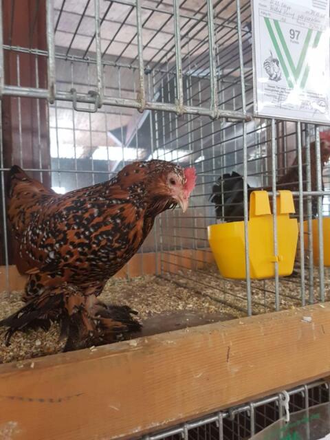 Federfüßige Zwerghühner Goldporzellan mit Bart, beringt von heuer, zuchttauglich, Abgabe als Stamm 1.2, Preis pro Stamm. Außerdem auch noch einige Hähne Federfüßige