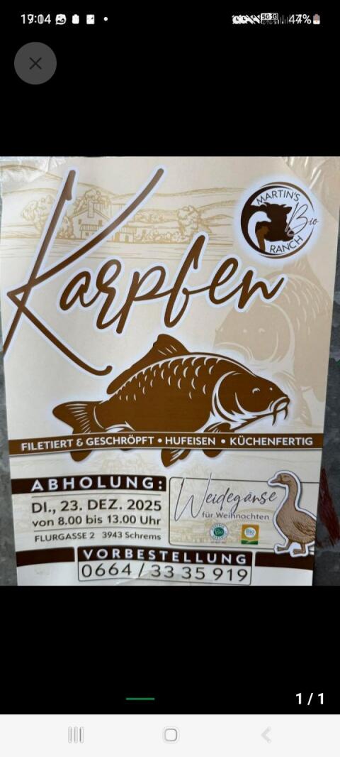 Verkaufe Weihnachtskarpfen und Weihnachtsgans, Abholung 23.12. Bitte reservieren. Sonstige Tiere Sonstiges Tierzubehör