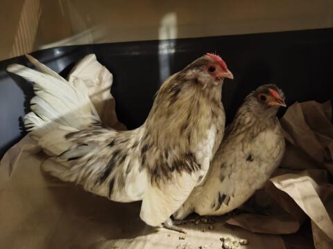 Vergeben unser Seidenhühner Pärchen. Sie sind zutraulich und ca. 6 Monate alt. Hahn € 15, - und Henne € 20, -. Hühner Seidenhühner
