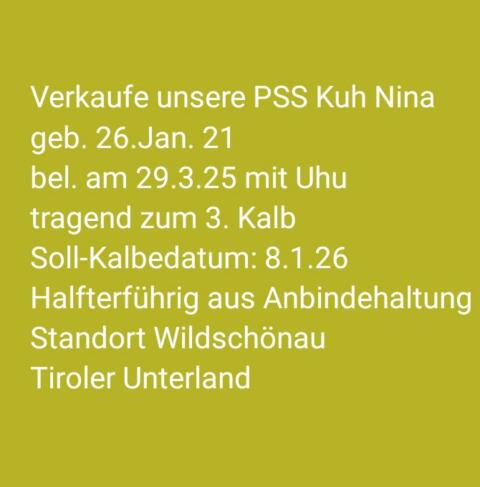 Verkaufe trächtige PSS Kuh. Rindermarkt Pustertaler Sprinzen
