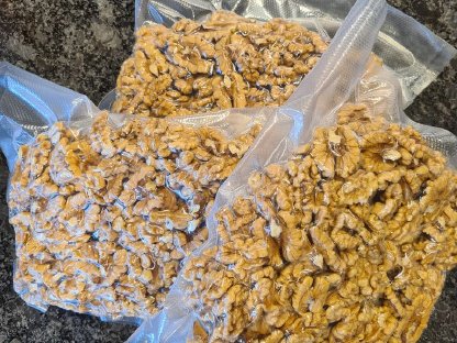 Ausgelöste Walnüsse aus dem Weinviertel, vakuumiert à 500 g. Versand möglich. € 20, -/kg exkl. Versand. Hofladen Nüsse