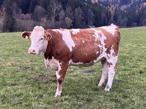 Verkaufe aufgrund von Platzmangel unsere trächtige behornte Murbodnerkalbin RAHEL, belegt mit JOCKER MB, S.K. 30.01.2026. Aus Laufstall, nicht führig, SNP geprüft. A