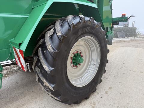Hinterreifen 340/85/R48, Vorderreifen 320/85/R32, Kulturreifen, Spur 210 cm, Achse vorne 171, 5 cm, Achse hinten 165 cm, Lochkreis 275 mm, Profil 90%. Leider lässt es