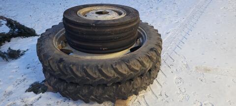 Kompletträder 230/95 R44 auf Verstellfelgen, Profil abgefahren. Kompletträder Vorderachse fix verschweißt 7.50-20, Profil neuwertig. Waren auf einem Steyr 1108, mit