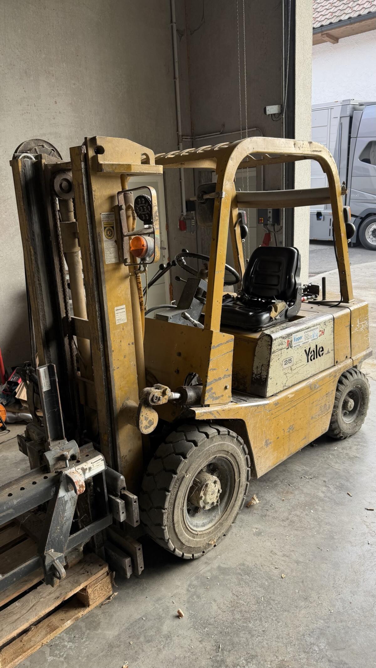TCM Typ 25. Hebt bis 2, 5 t, Dieselbetrieb, Hubhöhe 2, 6 m, Freihub 1, 5 m, Steuerkreis. Wird nicht mehr benötigt. Passt in jede Garage durch geringe Durchfahrtshöhe vo