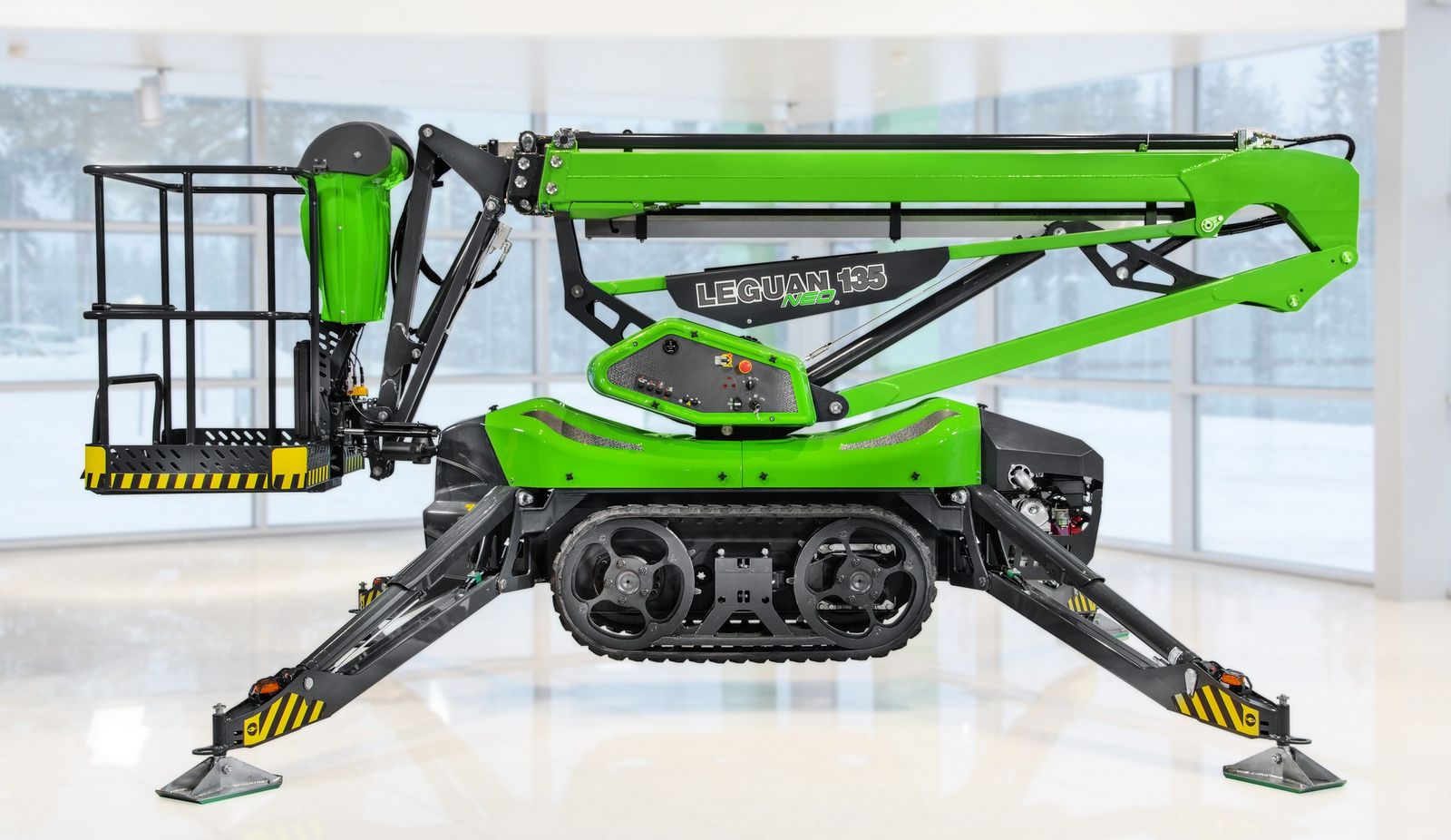 Der Leguan 135 NEO repräsentiert eine neue Generation von Hubarbeitsbühnen, die sich durch einfache Bedienbarkeit, hohe Tragfähigkeit und effizienzsteigernde Technol