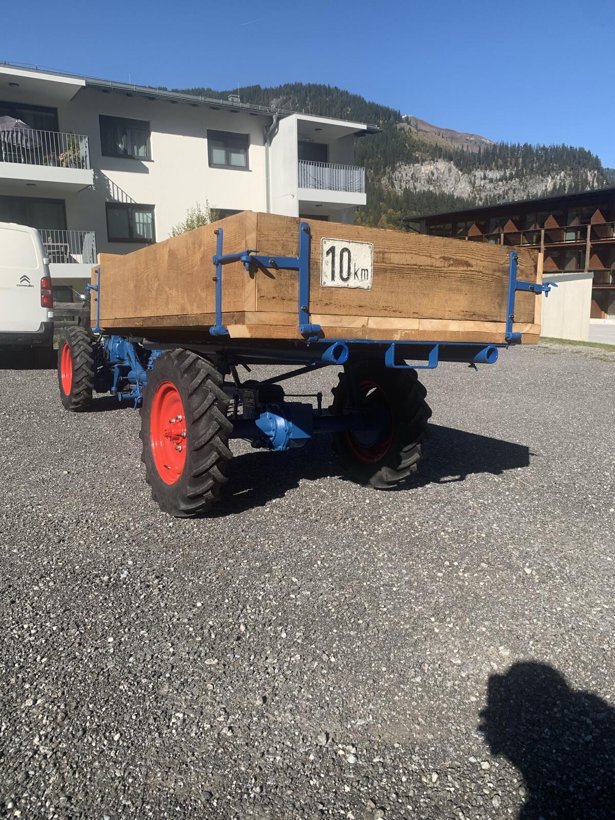 Der Einachsschlepper ist ein Allradfahrzeug mit einer Pritsche, die zum Kippen geht. Der Schlepper ist neu lackiert und die Pritsche neu gemacht mit Holz. Da ist auc