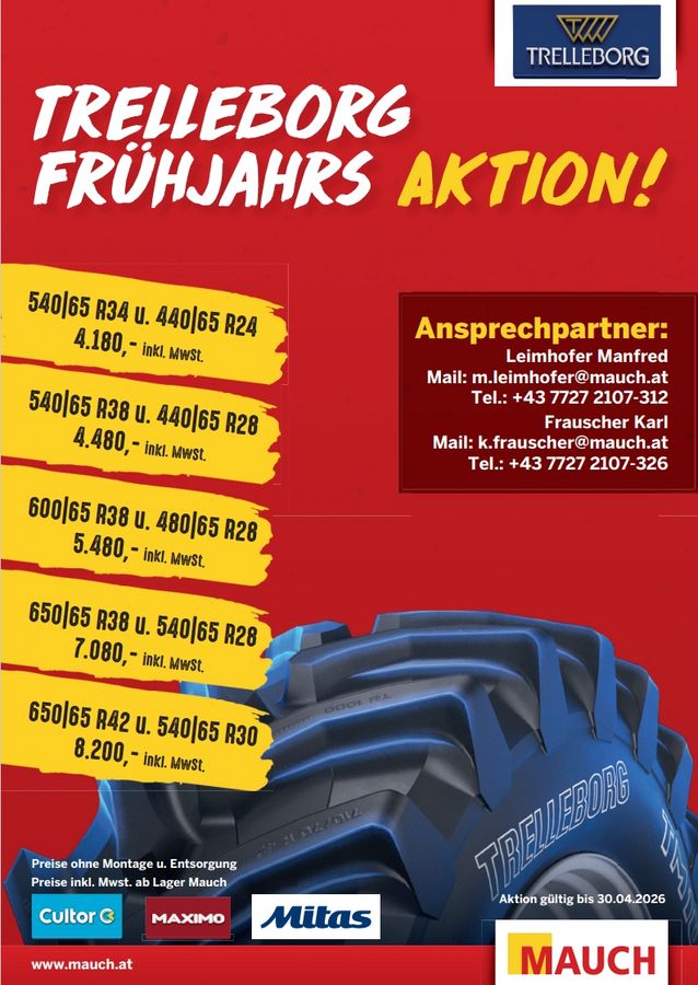 Mauch Trelleborg Reifen Aktion ab 4.180€ inklusive Mehrwertsteuer - 540|65 R34 u. 440|65 R24 4.180, - inkl. MwSt. - 540|65 R38 u. 440|65 R28 4.480, - inkl. MwSt.