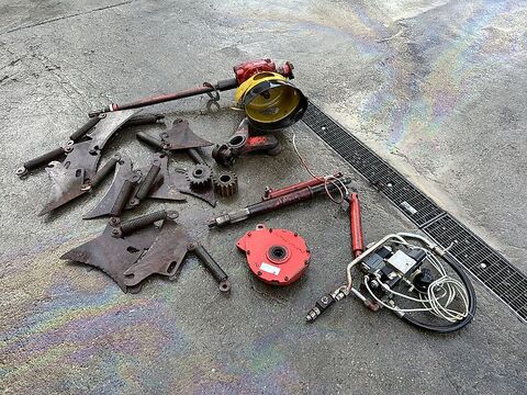 Hier sehen Sie verschiedene Teile von einem Mengele Garant Ladewagen.wie zum Beispiel: das Hauptgetriebe bzw Zapfwelleneingangsgetriebe, das Getriebe für den Ölmot